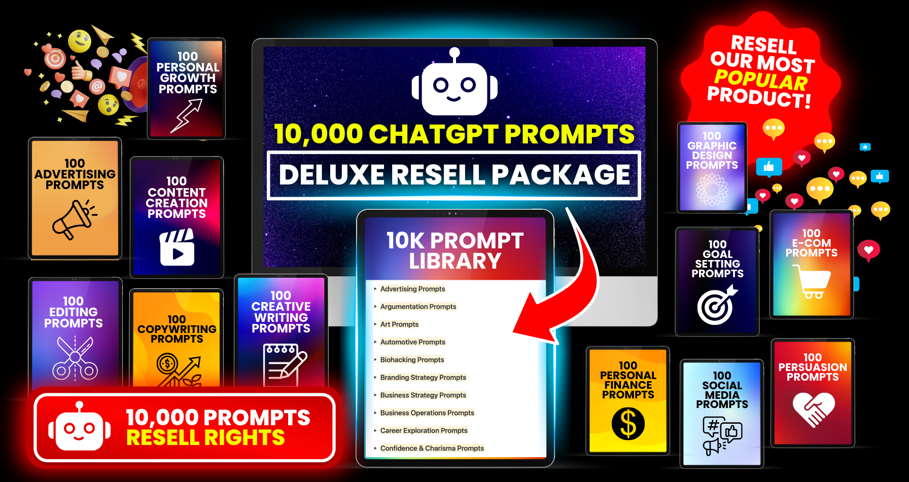 Receive The Resell Rights To Our AI Prompt Library With 10,000 Prompts! (Yes! Start Selling Our BEST SELLING Product As Your Own!)